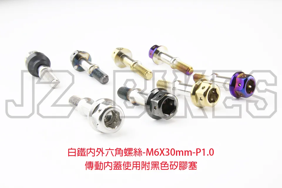 白鐵內外六角傳動內蓋螺絲 規格:M6X30MM-M8頭 - 附矽膠 適用:傳動內蓋商品單位為:單支 委製商:傑能商行地址:新北市三重區仁愛街421號1樓服務電話:02-2558-5275原產地:臺灣 主要成分:白鐵製造年月:2023年3月