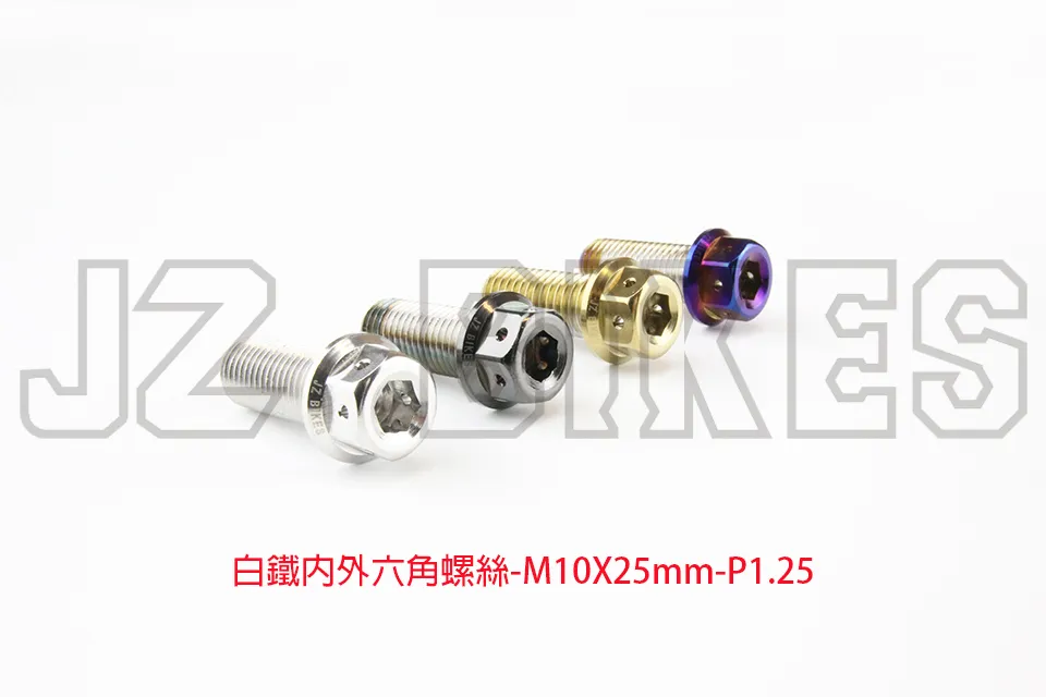 白鐵內外六角螺絲 規格:M10X25MM-P1.25MM商品單位為:單支 委製商:傑能商行地址:新北市三重區仁愛街421號1樓服務電話:02-2558-5275原產地:臺灣 主要成分:白鐵製造年月:2023年3月