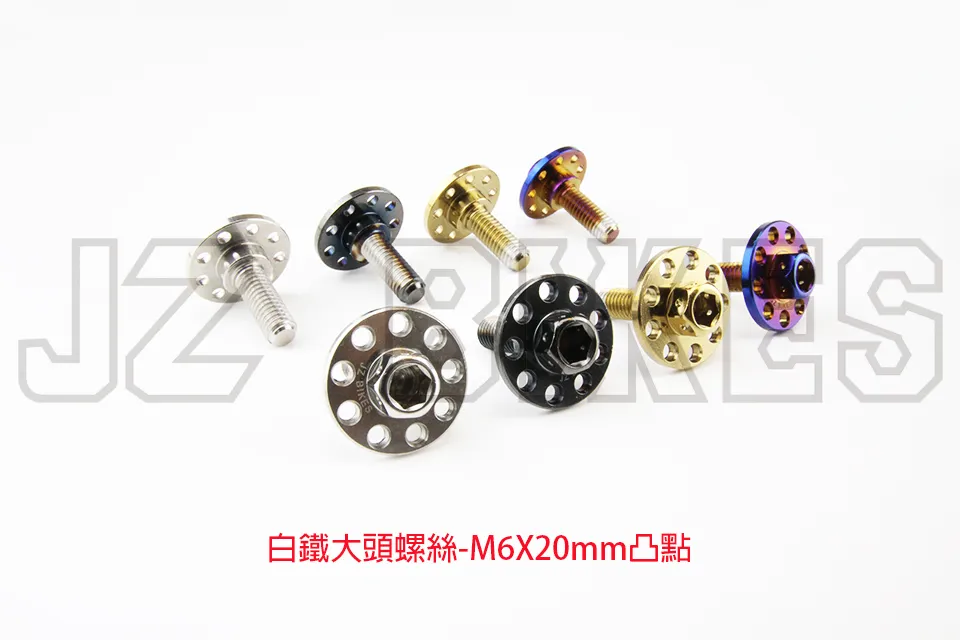 白鐵大頭凸點螺絲規格:M6X20mm適用:土除螺絲商品單位為:單顆 委製商:傑能商行地址:新北市三重區仁愛街421號1樓服務電話:02-2558-5275原產地:臺灣 主要成分:白鐵製造年月:2023年3月