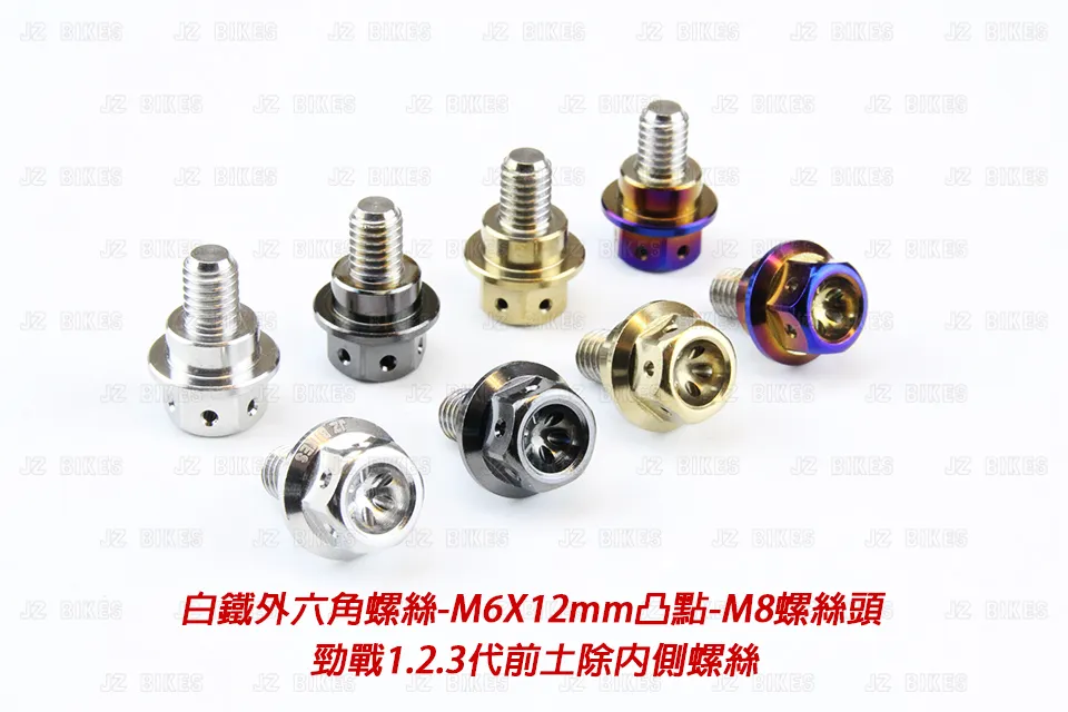 白鐵內外六角凸點螺絲 規格:M6X12MM-M8頭 適用:勁戰前土除內螺絲 商品單位為:單支 委製商:傑能商行地址:新北市三重區仁愛街421號1樓服務電話:02-2558-5275原產地:臺灣 主要成分:白鐵製造年月:2023年3月