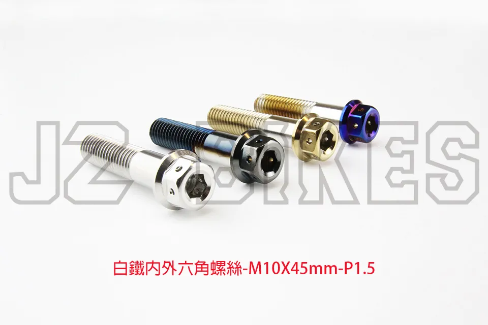 白鐵內外六角螺絲 規格:M10X45MM-P1.5MM商品單位為:單支 委製商:傑能商行地址:台北市大同區太原路156巷22號1樓服務電話:02-2558-5275原產地:臺灣 主要成分:白鐵製造年月:2023年3月