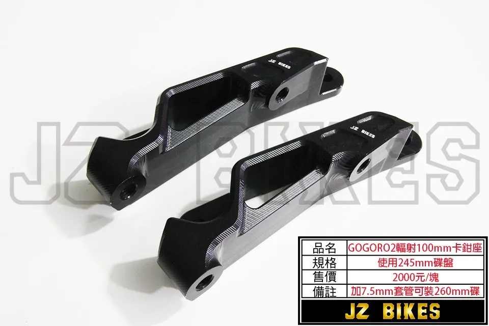 GOGORO2/3 鋁合金前輻射卡座規格:鎖點100MM對應原廠245MM碟盤/加大260MM碟盤(需另購輻射套管)商品單位為:1塊 委製商:傑能商行地址:新北市三重區仁愛街421號1樓服務電話:02-2558-5275原產地:臺灣 主要成分:鋁合金製造年月:2023年3月