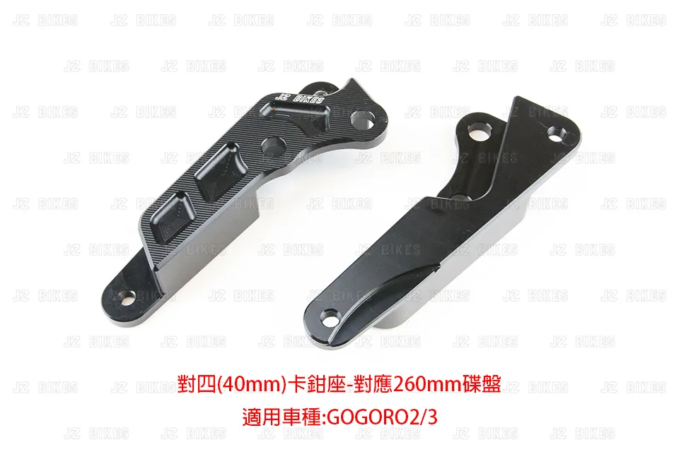 GOGORO2/3鋁合金前對四卡鉗座規格:鎖點40MM對應加大260MM碟盤商品單位為:1塊 委製商:傑能商行地址:新北市三重區仁愛街421號1樓服務電話:02-2558-5275原產地:臺灣主要成分:白鐵製造年月:2023年8月