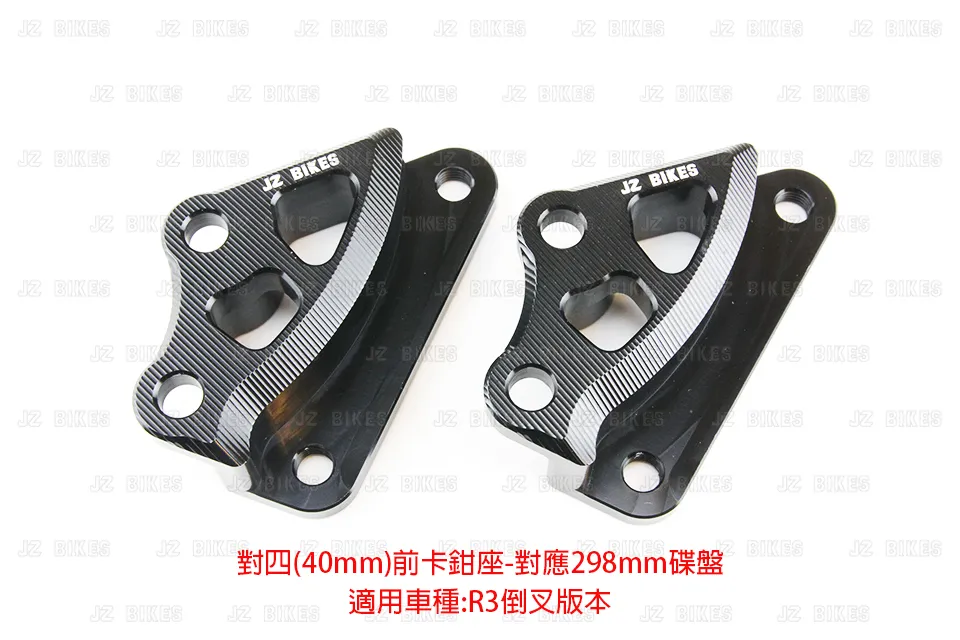 R3 倒叉 鋁合金前對四卡鉗座 規格:鎖點40MM (對應原廠298MM碟盤)商品單位為:1塊 委製商:傑能商行地址:新北市三重區仁愛街421號1樓服務電話:02-2558-5275原產地:臺灣 主要成分:鋁合金製造年月:2023年3月