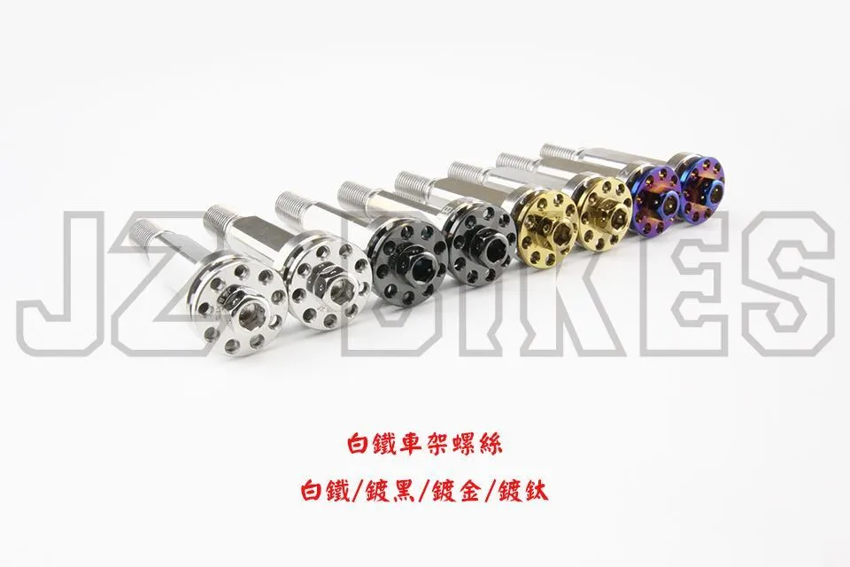 新款白鐵鍍鈦大頭車架螺絲適用:1-5代勁戰/BWS/BWSR/GTR商品:兩支為1組 委製商:傑能商行地址:新北市三重區仁愛街421號1樓服務電話:02-2558-5275原產地:臺灣 主要成分:白鐵製造年月:2023年3月