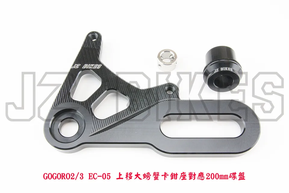 GOGORO2/3/EC05 鋁合金後上大螃蟹卡鉗座規格:鎖點84MM (對應加大200MM碟盤)商品內容:卡座-1/卡座套管-1/後搖臂套管-1 委製商:傑能商行地址:新北市三重區仁愛街421號1樓服務電話:02-2558-5275原產地:臺灣 主要成分:鋁合金製造年月:2023年3月