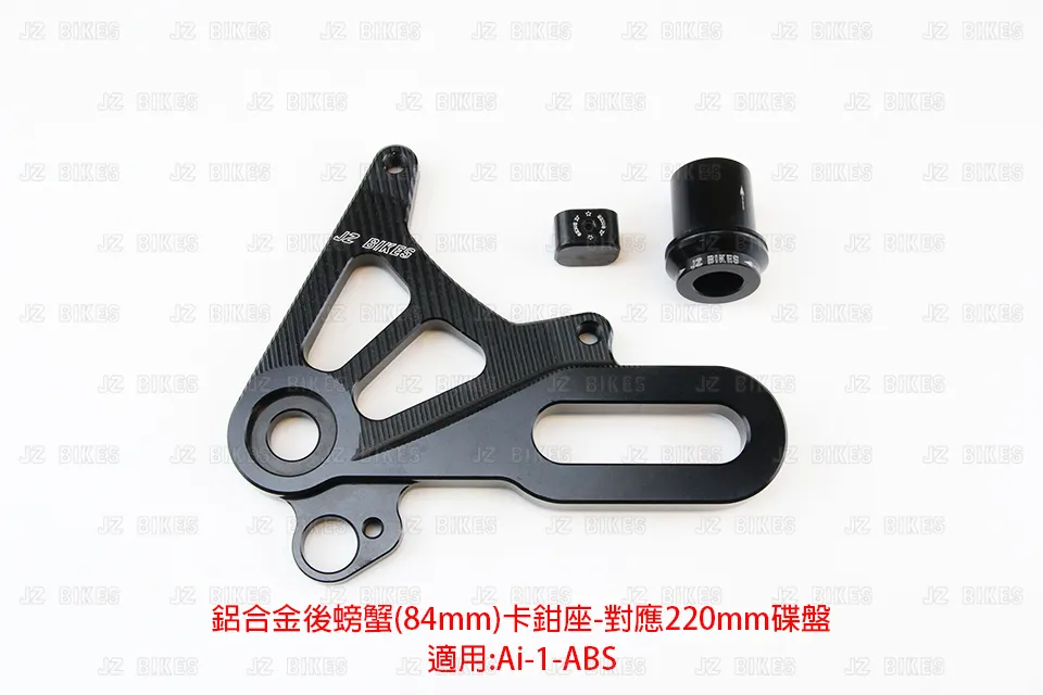 宏佳騰AI1 ABS 鋁合金後上大螃蟹卡鉗座規格:鎖點84MM (對應加大220MM碟盤)商品內容:卡座-1/卡座套管-1/後搖臂套管-1 委製商:傑能商行地址:新北市三重區仁愛街421號1樓服務電話:02-2558-5275原產地:臺灣主要成分:鋁合金製造年月:2023年6月
