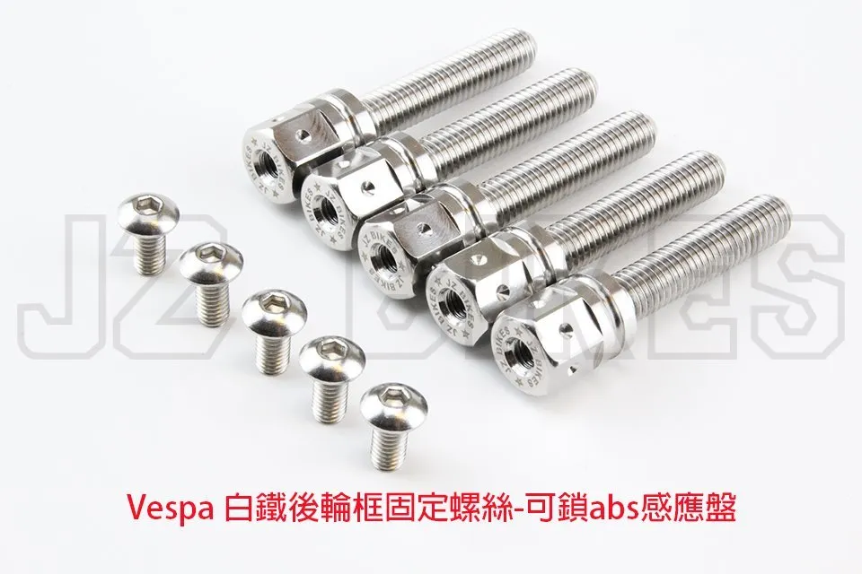 偉士牌白鐵後輪框固定螺絲適用:Vespa-abs GTS300商品單位為:5顆為1組 委製商:傑能商行地址:新北市三重區仁愛街421號1樓服務電話:02-2558-5275原產地:臺灣 主要成分:白鐵製造年月:2023年3月