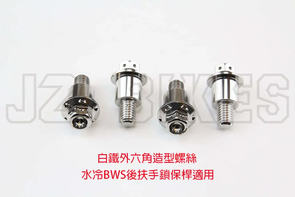 白鐵後扶手鎖保桿螺絲-4件組適用:水冷BWS保桿專用商品單位為:4件為1組 委製商:傑能商行地址:新北市三重區仁愛街421號1樓服務電話:02-2558-5275原產地:臺灣 主要成分:白鐵製造年月:2023年3月