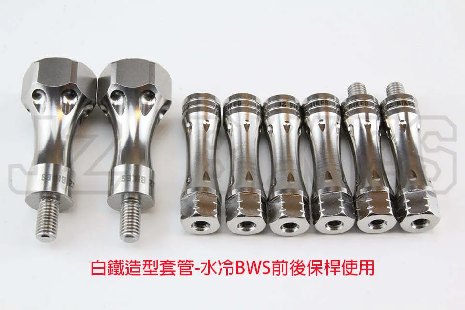 白鐵造型套管+造型螺絲-8件組適用:水冷BWS保桿專用商品單位為:8件為1組 委製商:傑能商行地址:新北市三重區仁愛街421號1樓服務電話:02-2558-5275原產地:臺灣 主要成分:白鐵製造年月:2023年3月