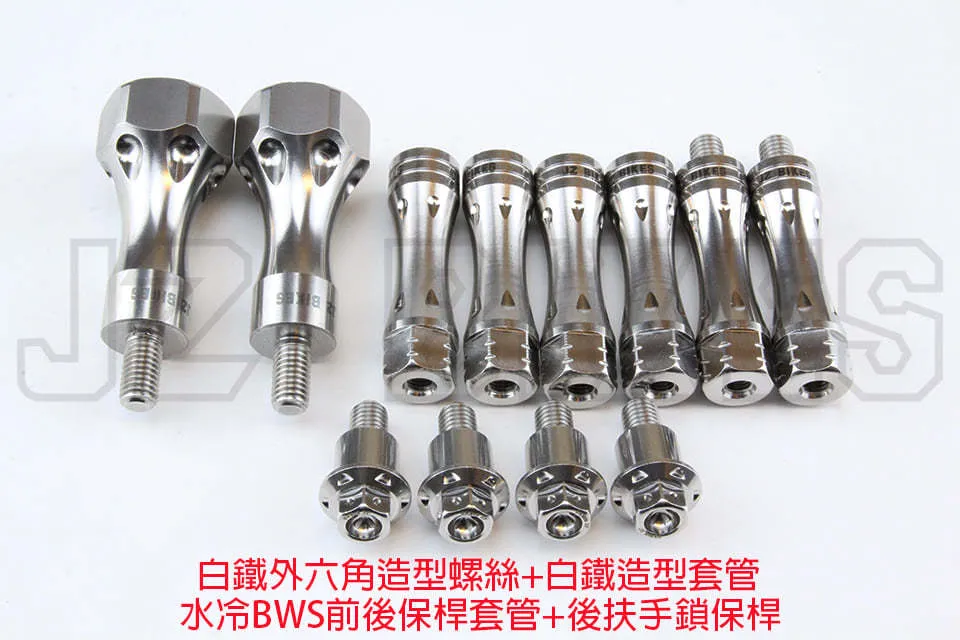 白鐵造型套管+造型螺絲-12件組適用:水冷BWS保桿專用商品單位為:12件為1組 委製商:傑能商行地址:新北市三重區仁愛街421號1樓服務電話:02-2558-5275原產地:臺灣 主要成分:白鐵製造年月:2023年3月