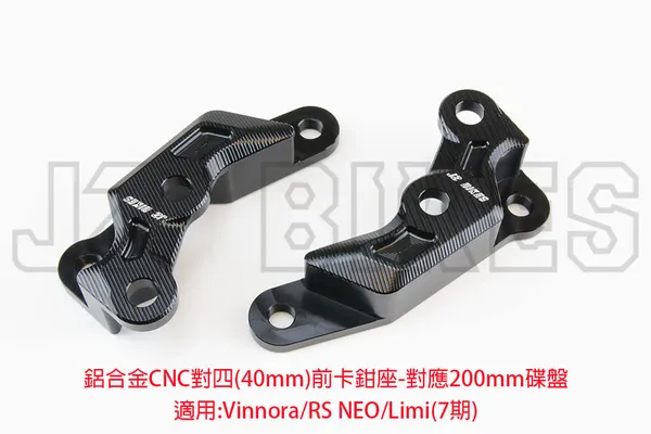 Vinoora/RS-NEO/Limi125 鋁合金前對四卡鉗座規格:鎖點40MM (對應加大200MM碟盤)商品單位為:1塊 委製商:傑能商行地址:新北市三重區仁愛街421號1樓服務電話:02-2558-5275原產地:臺灣 主要成分:鋁合金製造年月:2026年3月