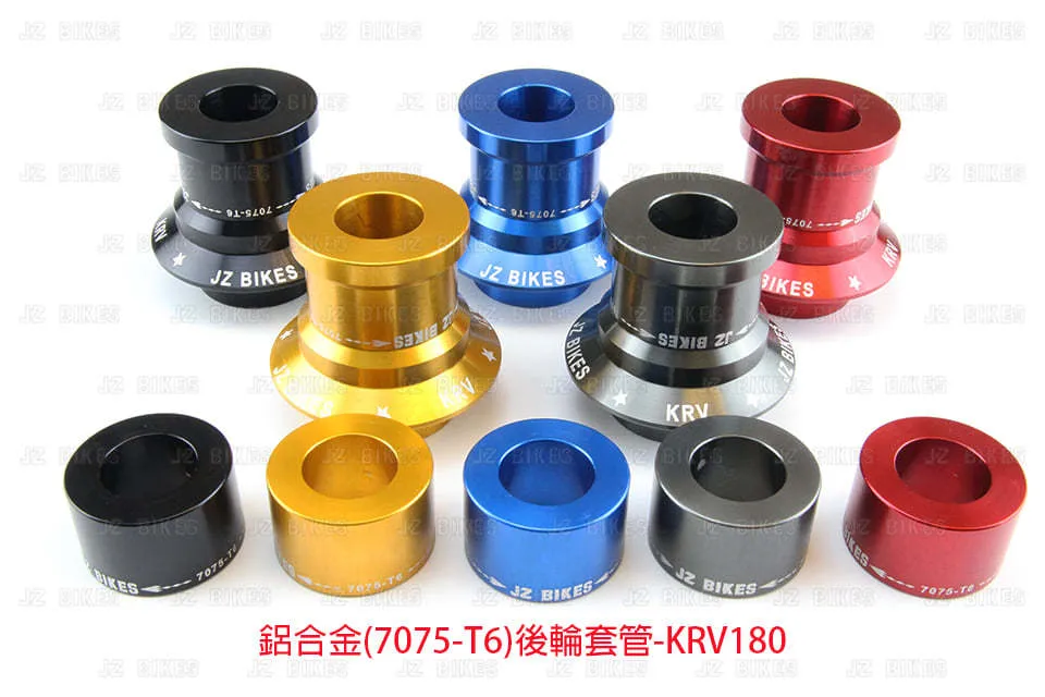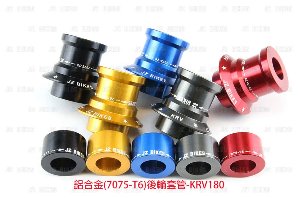 KRV180 鋁合金後輪套管材質:7075-T6商品單位為:兩顆1組現貨顏色:黑色/金色/紅色/藍色/鐵灰色 客製色:銀色/橘色/綠色/紫色/古銅色以上顏色為:客訂製作工時為:3-5天(不包含例假日) 委製商:傑能商行地址:新北市三重區仁愛街421號1樓服務電話:02-2558-5275原產地:臺灣 主要成分:鋁合金製造年月:2023年3月