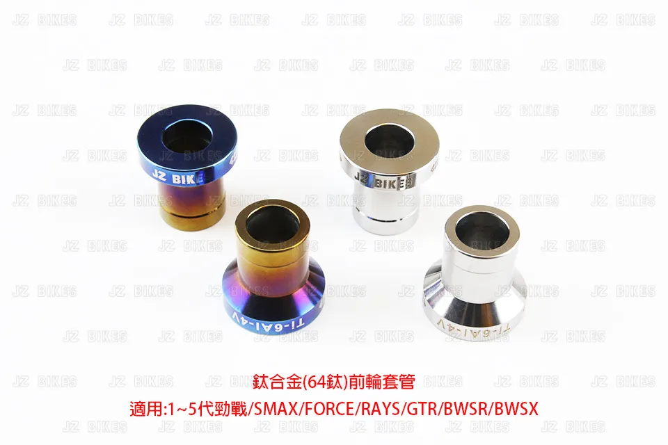 鈦合金(正64鈦)前輪套管適用:1~5代勁戰/BWSX/BWSR FORCE/SMAX/RAY/GTR商品單位為:1顆(五代勁戰abs/smax abs需2顆)接觸前叉外徑為25mm加大支撐面積+裝入油封後有防鬆拖設計讓拆裝輪胎不再睹當天運氣如何,跟本司生產白鐵前輪套管一樣,比白鐵減輕40%的重量,保證永不生鏽 委製商:傑能商行地址:新北市三重區仁愛街421號1樓服務電話:02-2558-5275原產地:臺灣 主要成分:鈦合金製造年月:2023年3月