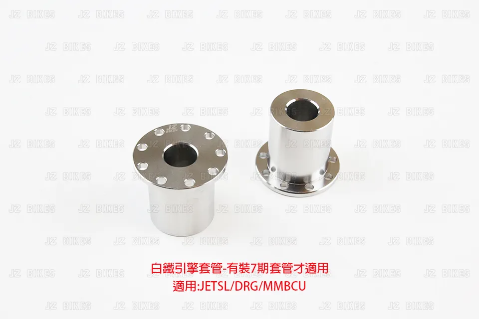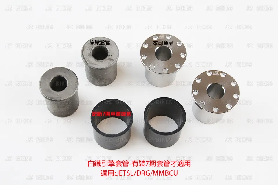 白鐵引擎套管適用:JETS/JETSR/JETSL/DRG/MMBCU #只有單白鐵套管自潤襯套需購買原廠 補正原廠公差,讓引擎與吊架前後左右沒有間隙 路感大輻提升,讓你騎乘殺彎更加犀利 商品單位為: 一組只有2顆白鐵套管 委製商:傑能商行地址:台北市大同區太原路156巷22號1樓服務電話:02-2558-5275原產地:臺灣 主要成分:白鐵製造年月:2023年3月