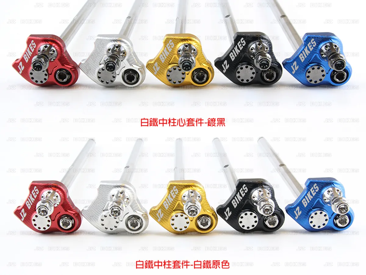 公告: 近期發生DRG/MMBCU/JETSL白鐵中柱心鬆脫案例 #是鬆脫不是斷掉 #解決辦法請寄回本公司重新鎖緊即可繼續使用 目前發生鬆脫都是JETSL車系,據所知都是用原廠中柱修改成大胎能裝的,原廠中柱修改工法很多種,有的修改工法會造成中柱上套管變形,安裝中柱心卡卡不順硬塞就有機會造成鬆脫的機會發生 異種材質結合使用螺牙結合,螺牙上皆塗抹高強度螺絲膠及上扭力鎖固,只要順順裝入不太可能發生鬆脫的案例 白鐵中柱套件(軸心一律白鐵色) 對應車種:JETSL/MMBCU/DRG 白鐵售價:1380元/塊(不含安裝工資) 鍍色售價:1580元/塊(不含安裝工資) 鋁件本體顏色:黑/銀/金/紅/藍(其餘顏色採訂製生產) #改善中柱心生鏽導致中柱做動卡卡的問題 #改善中柱心生鏽導致中柱難拆的問題 #視覺與效果一次都能擁有 委製商:傑能商行地址:新北市三重區仁愛街421號1樓服務電話:02-2558-5275原產地:臺灣 主要成分:白鐵/鋁合金製造年月:2023年8月