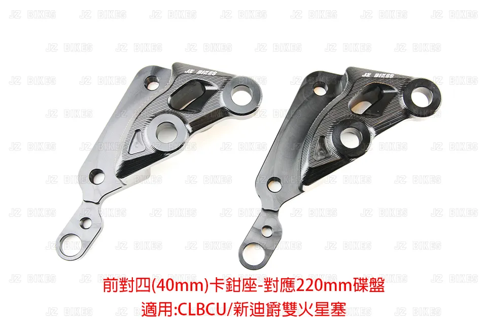 鋁合金對四(40mm)前卡鉗座 對應:220mm碟盤 適用:CLBCU/新迪爵雙火星塞(此車種可通用) 商品單位為:單塊 委製商:傑能商行地址:新北市三重區仁愛街421號1樓服務電話:02-2558-5275原產地:臺灣主要成分:鋁合金製造年月:2023年10月