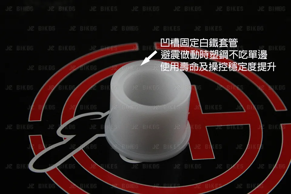 此塑鋼套管有做凹槽定位白鐵套管,避震器做動時不吃單邊,使用壽命及操控度提升